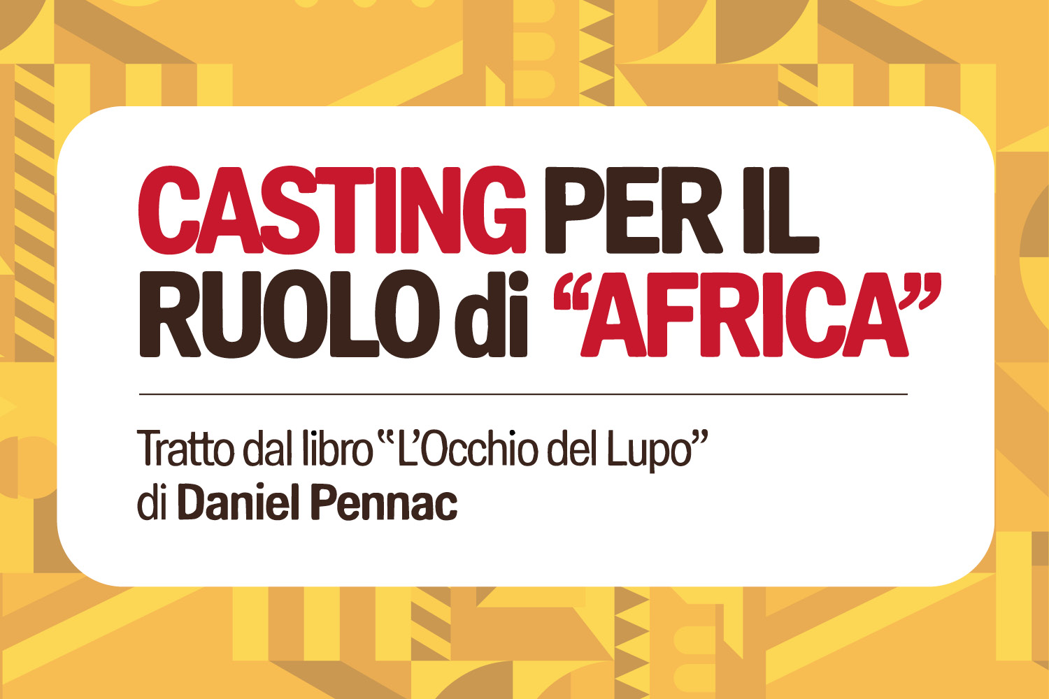 Siamo alla ricerca di un’attrice/attore per la nuova produzione tratta da L’occhio del lupo di Daniel Pennac.